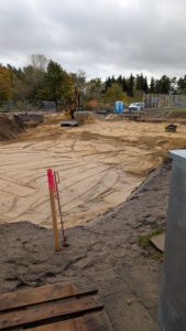 Seit September konnte man es schon erahnen, aber seit den letzten Wochen kann man es ganz klar erkennen: Hier ist eine Baustelle! Neben unserer Sporthalle entsteht momentan unser Neubau. In den Pausen ist es für viele Kinder spannend, den Bauarbeitern und Fahrzeugen zuzuschauen. Wir sind schon sehr gepannt auf das Endergebnis!